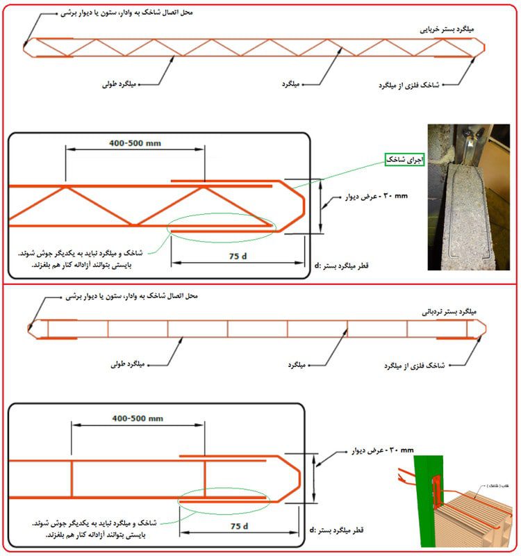 • میلگرد بستر خرپایی سختی بیشتری نسبت به میلگرد بستر نردبانی دارند و استفاده از آن در اولویت اول قرار دارد.