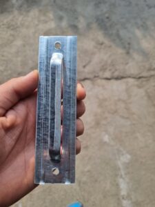 از جنس فولاد گالوانیزه و دارای ضخامت 2 میلی‌متر ، طول 15 سانتی‎‌متر و عرض 3 سانتی متر می باشد.