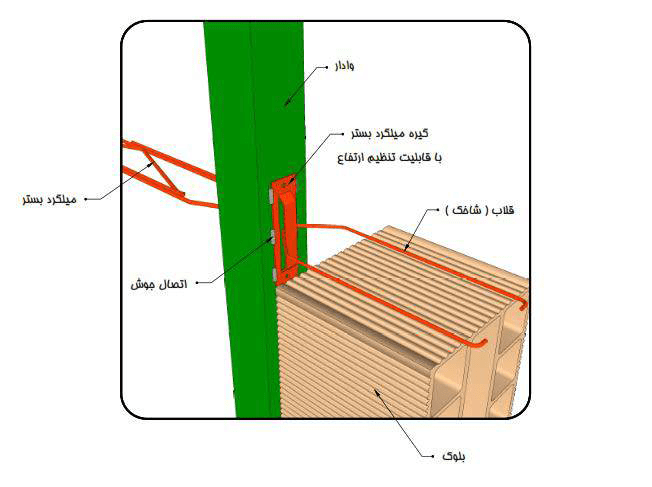 • میلگرد بستر نباید تحت هیچ شرایطی بصورت مستقیم به ستون جوش داده شود و باید با گیره و قلاب به ستون متصل شوند.