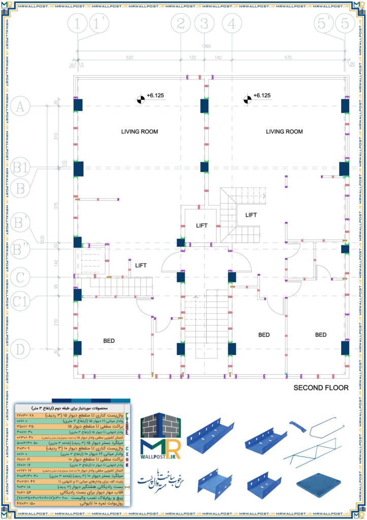 • اگر در زیرزمین دیوار حائل نداشته باشیم و تراز پایه ساختمان از روی فونداسیون در نظر گرفته شود، اجرای وال پست در زیرزمین الزامی است.