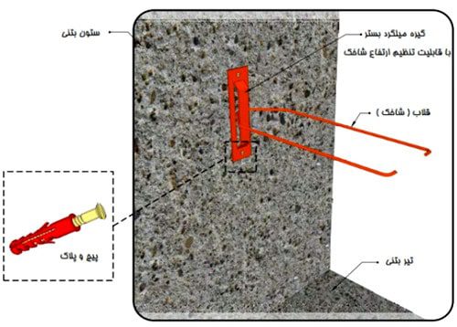 • در اتصال کشویی مجاز به استفاده از جوش برای اتصال قلاب (شاخک) میلگرد بستر به والپست هستیم.