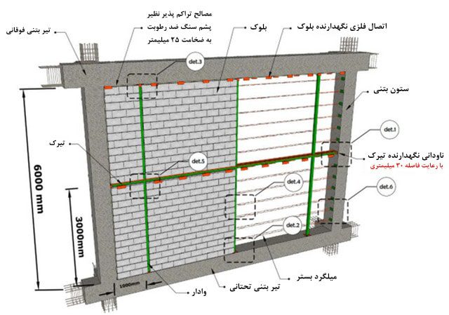طبق استاندارد 2800 ایران دیوارهای داخلی و خارجی که ارتفاع آن‌ها بیش از 1.8 متر باشد، باید به سازه مهار شوند تا در برابر نیروهای جانبی زلزله و باد مقاومت کافی داشته باشند.
