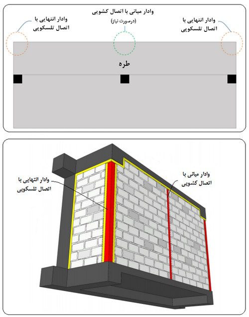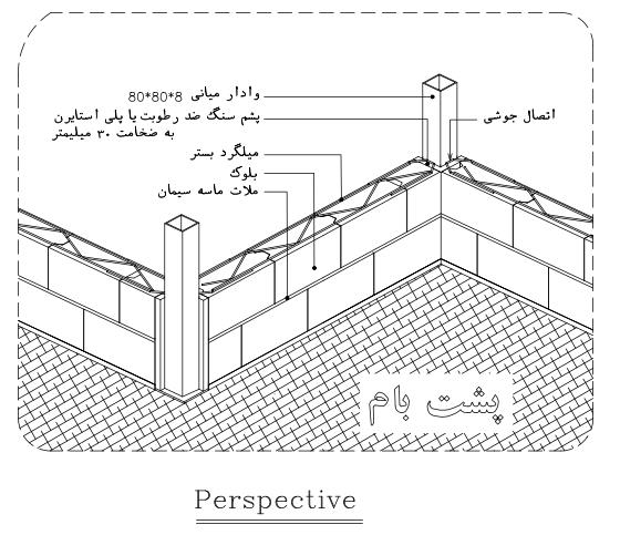 • برای وسط دهانه ها مشابه والپست میانی اجرا می شود با این تفاوت که برای مهار والپست ها در بالا از میلگرد بستر استفاده می شود.