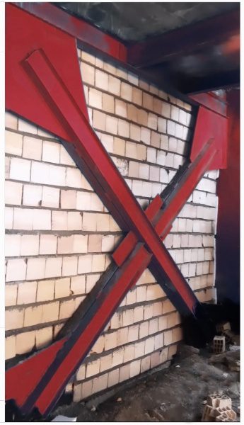 • طبق پیوست 6 استاندارد 2800, اجرای دیوار در محور مهاربند یا اصولا هرگونه تماس یا اتصال به مهاربند باتوجه به اینکه مانع از عملکرد صحیح و رفتار مناسب مهاربند می‌شود، ممنوع می‌باشد. پس در این دهانه دیوار را خارج از محور مهاربند اجرا می‌کنیم.