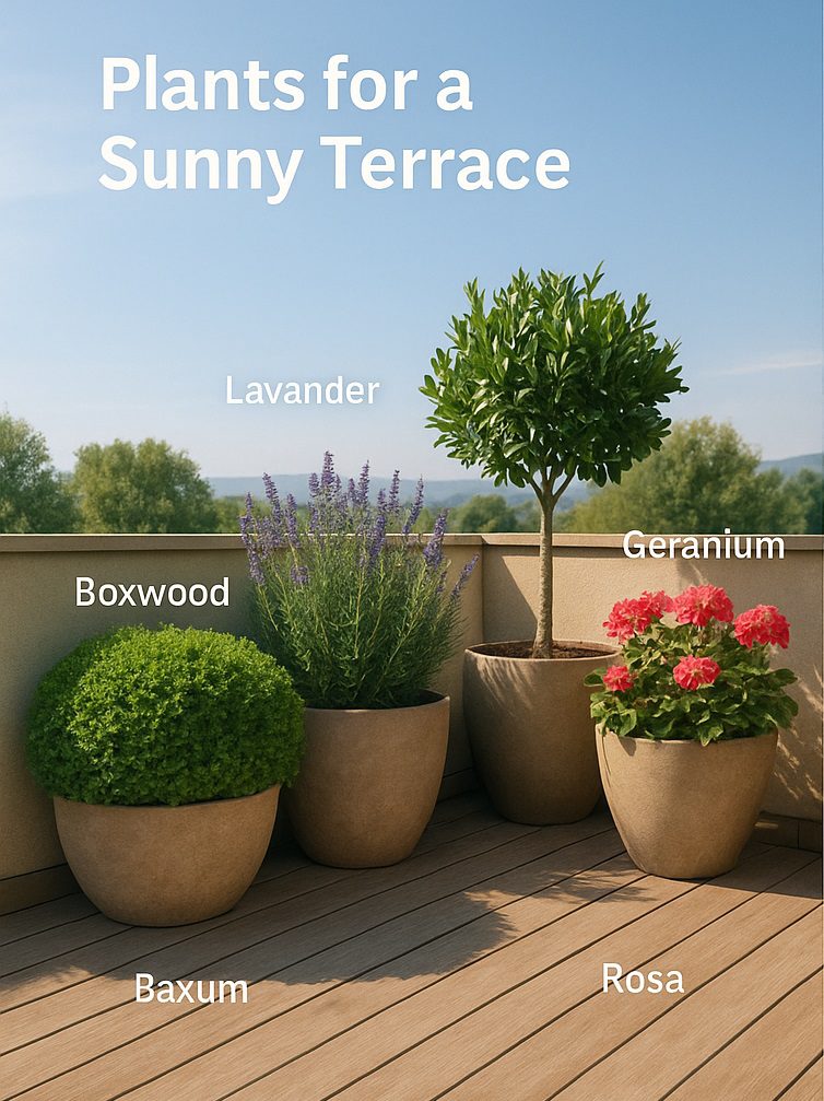 در لواسان بسیاری از تراسها و روفگاردنها با نور شدید و طولانی مواجهاند؛ بنابراین استفاده از گیاهان مقاوم به گرما، نور و باد ضروری است: