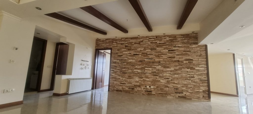 3 – اجرای دیوار پشت تلویزیون با سنگ آنتیک طبیعی